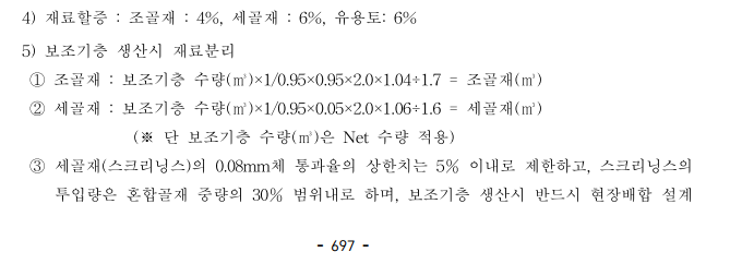 세골재 생산수량 : 보조기층 다짐 수량 × 0.0697