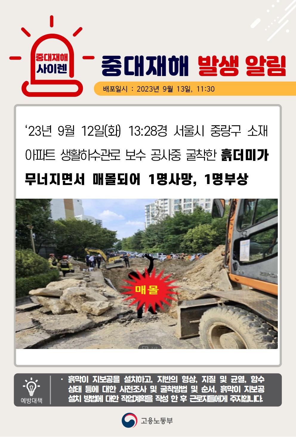 1. 관로 굴착공사 중 토사 붕괴로 인한 중대재해 사례