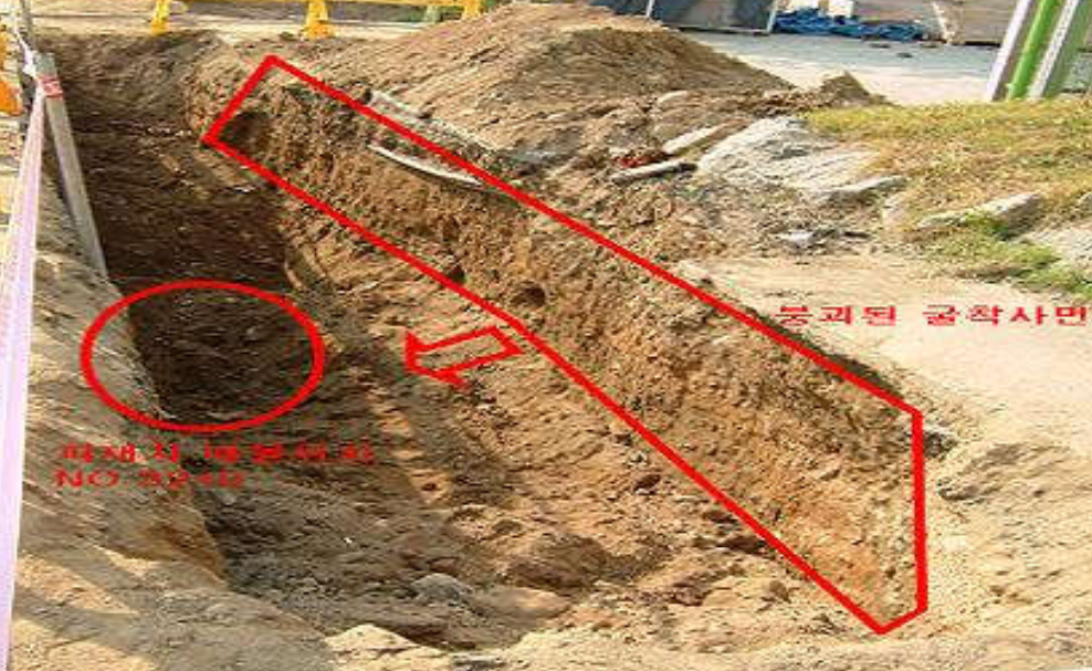○ 담장, 옹벽, 절토사면 등 붕괴 ㆍ 도괴 우려가 있는 시설물에 근접한 장소에서 굴착 작업 시, 해당 시설물을 보강 또는 제거하거나 관로 굴착 위치 변경 등을 검토하는 등의 안전조치 후 작업 진행 필요.